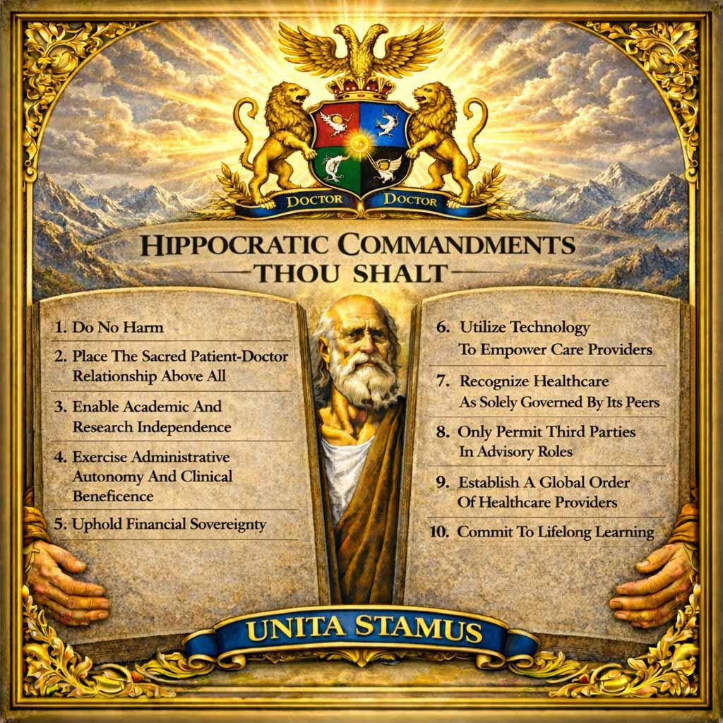 THOU SHALT uphold the sacred calling of medicine, not as an industry, not as a commodity, and not as a political instrument—but as a moral vocation entrusted to healthcare providers by humanity itself.